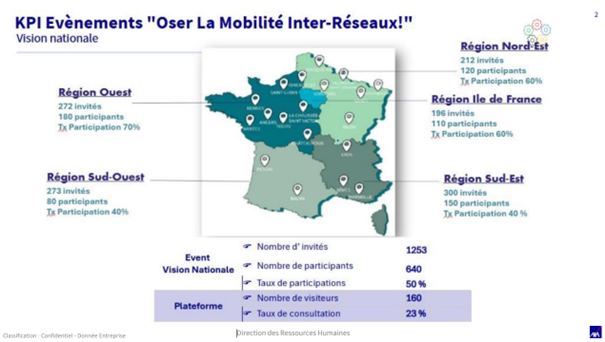 L’idée est de favoriser la mobilité inter-réseaux. Le sujet est pris en charge par la RH France. Taux de participation élevé pour la région Ouest.